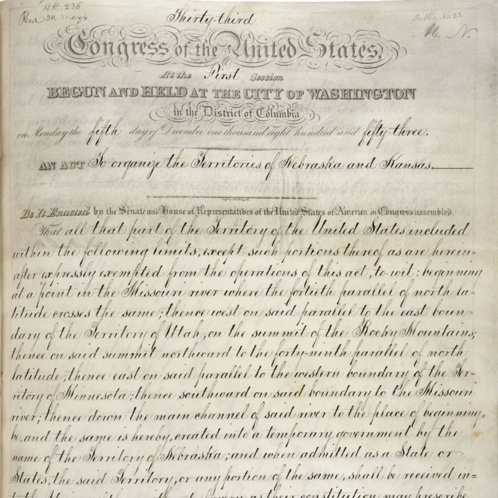 The Kansas-Nebraska Act of 1854 enacted a policy called popular sovereignty for the newly-created territories of Kansas and Nebraska, in which settlers would vote on whether to permit slavery in their respective regions. Lincoln strongly opposed this act, arguing that it put slavery on a path towards expansion rather than extinction.
